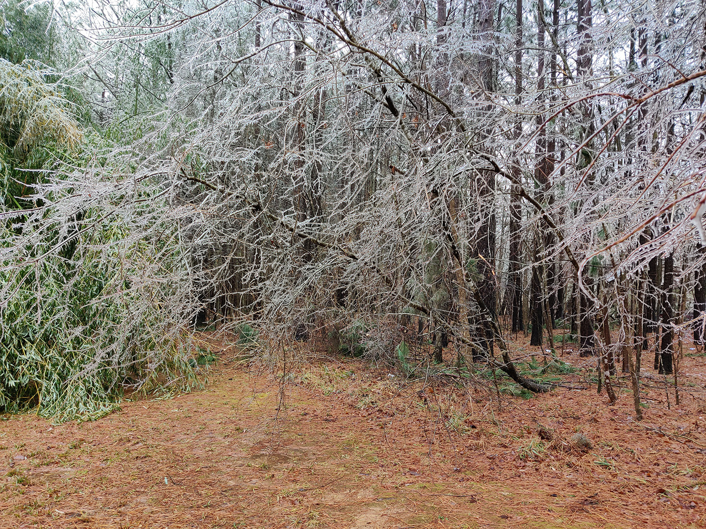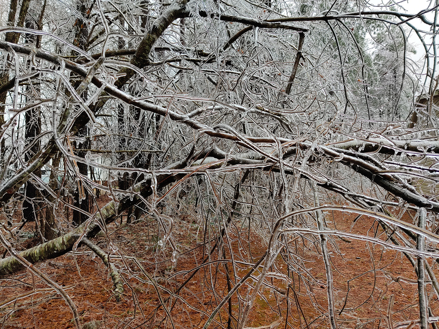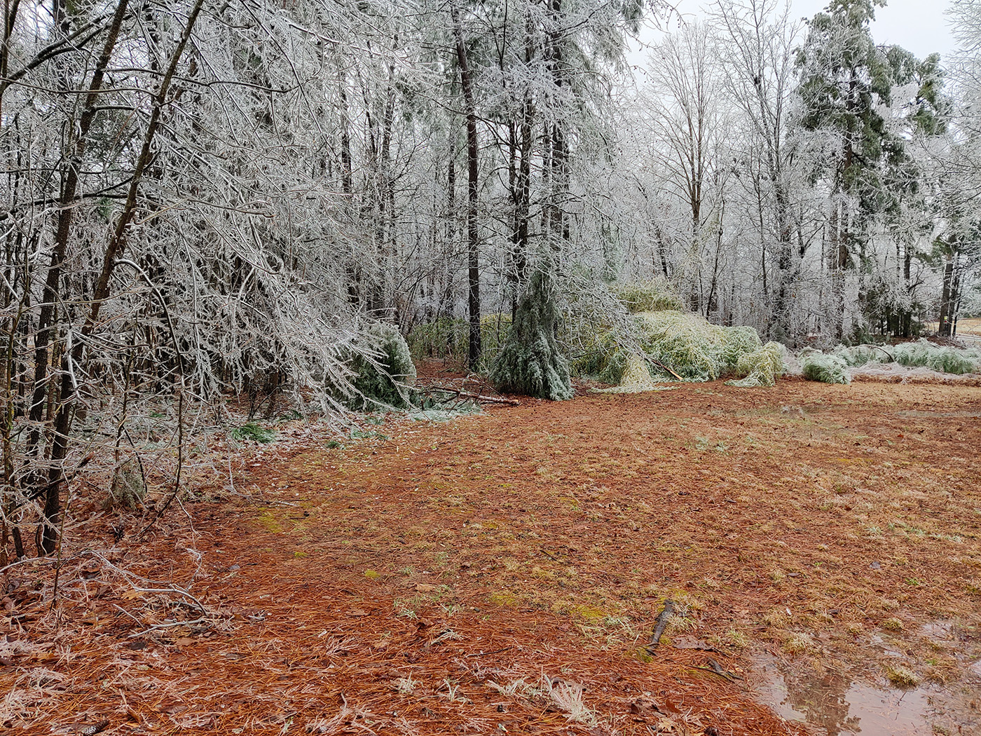 in agreement that the ice was rapidly leaving the area and temperatures were rising. There were "new" trees down on the road on my return trip, but overall conditions were much better than they were on the 13th.