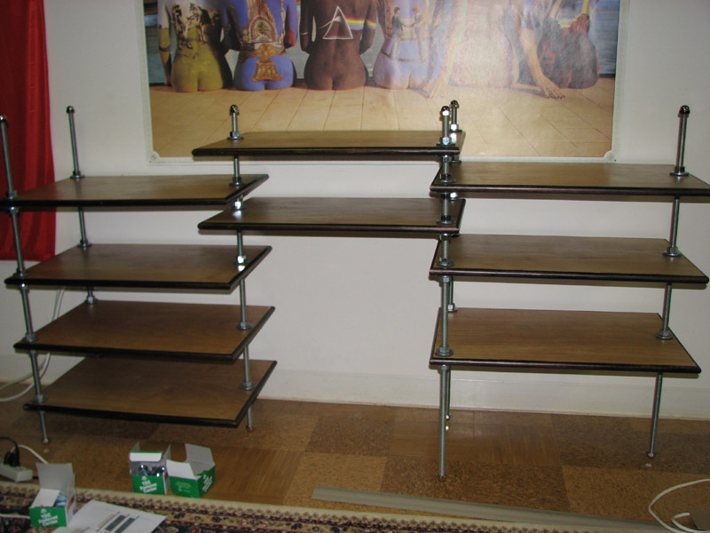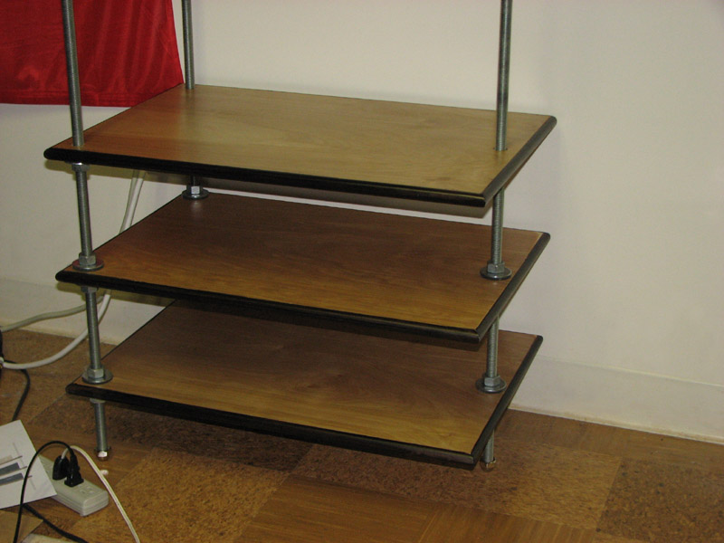 Addendum - I strongly prefer the original flexy-rack "tripod" design. When going with multiple verticle stacks, they support one another very nicely and are infinitely expandable ( a double wide can easily become a triple wide, which can become a quad wide, etc., etc.). This strikes me as an excellent excuse/reason to buy more equipment ;) Plan ahead. Draw your plans up in whatever graphics software you have (even MS Paint will do) and then draw them up again. And again. And again. Time spent playing in Photoshop will pay off when it comes time to build, as by now you will have a very good vision of exactly what it is you want to build (see: Patience - virtue) Take pictures of your work in progress and the finished product. Other people want to see your ideas made into reality. Web pages of DIY projects are a great goodness. You may give someone an idea; you may inspire them to try it for themself. This is a worthy thing to do. |